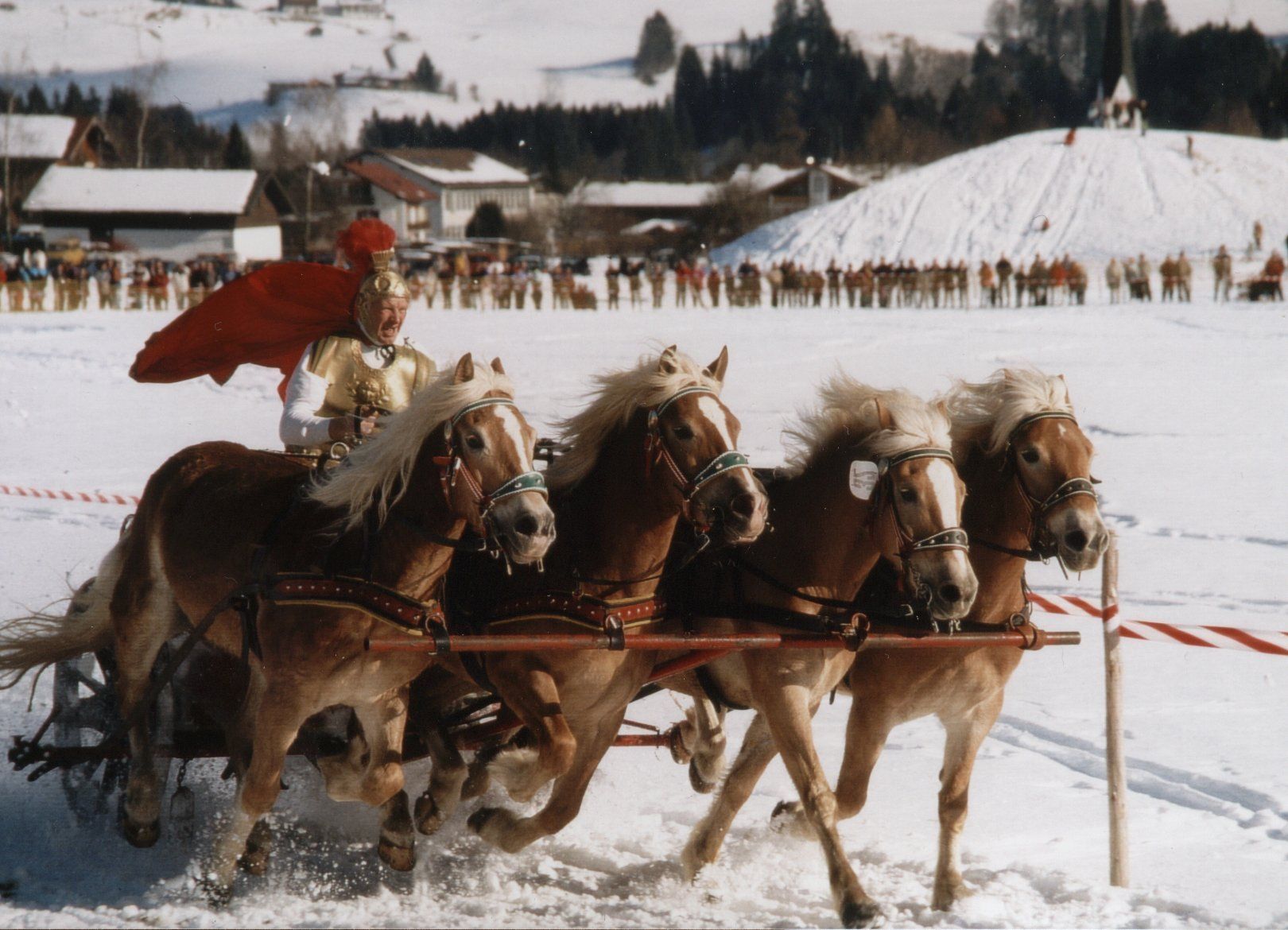 mit Ein- und Zweispänner-Trabrennen, Skijöring und den Schaunummern wie Römischer Kampfwagen, Ungarische Post und Bürgermeisterrennen