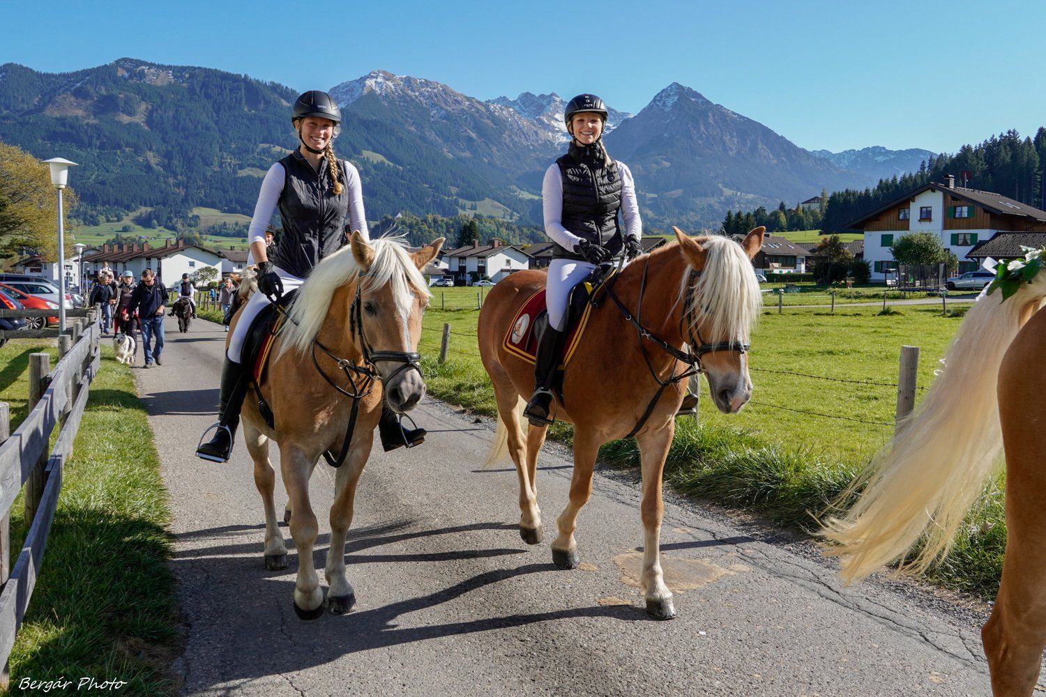 Die Kutschen und Reiter mit ihren festlich geschmückten Haflingern waren wunderschön anzusehen. Pater Joe zelebrierte eine stimmungsvolle Andacht mit Pferdesegnung und die Musikkapelle Bolsterlang umrahmte das Programm musikalisch.